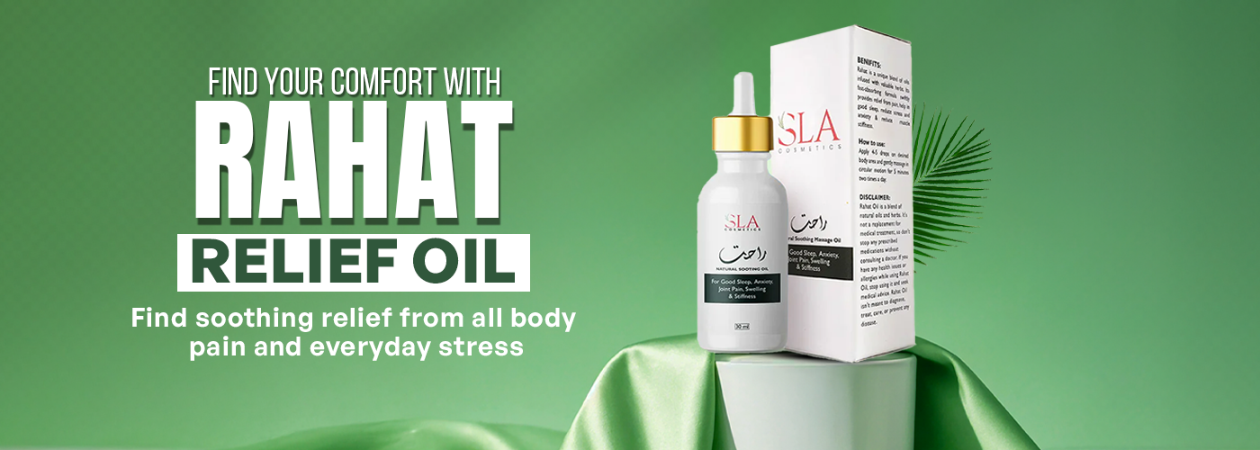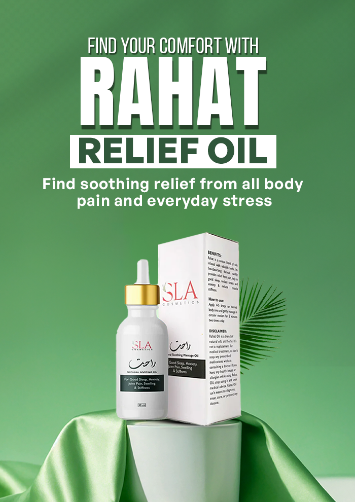 When you're feeling overwhelmed or tense, whether it's from a busy day or just needing a moment of calm, apply 2-3 drops of Rahat Relief Oil to your forehead for instant relief. This unique blend of oils and herbs helps you unwind naturally and promotes a sense of well-being with every use.